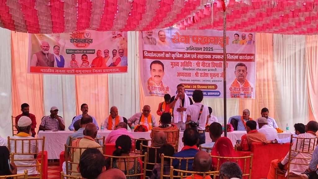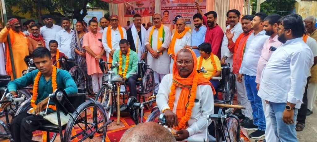 प्रयागराज। सेवा पखवाड़ा अभियान के अन्तर्गत दिव्यांगजन सशक्तीकरण विभाग द्वारा संचालित कृत्रिम अंग एवं सहायक उपकरण योजनान्तर्गत दिनांक 28 सितम्बर 2025 को विकास खण्ड मेजा, प्रयागराज के परिसर में अस्थिबाधित दिव्यांगजनों को ट्राइसाईकिल वितरित की गई। इस अवसर पर कार्यक्रम की अध्यक्षता भाजपा जिलाध्यक्ष (यमुनापार) श्री राजेश शुक्ला ने की तथा मुख्य अतिथि श्री नीरज त्रिपाठी, पूर्व लोकसभा प्रत्याशी, ने अपने कर कमलों से कुल 44 ट्राइसाईकिलों का वितरण किया।मुख्य अतिथि ने अपने उद्बोधन में बताया कि प्रदेश सरकार द्वारा 17 सितम्बर से 02 अक्टूबर 2025 तक सेवा पखवाड़ा अभियान संचालित किया जा रहा है। इसका उद्देश्य समाज के कमजोर एवं वंचित वर्गों को शासकीय योजनाओं से जोड़कर उन्हें सशक्त एवं आत्मनिर्भर बनाना है। इस अवसर पर ब्लॉक प्रमुख प्रतिनिधि गंगाप्रसाद मिश्रा, खंड विकास अधिकारी मेजा अमित सिंह, एडीओ समाज कल्याण सुशान्तु पाण्डेय, भाजपा जिला महामंत्री श्री पुष्पराज पटेल, जिला उपाध्यक्ष राजेश्वर तिवारी, सन्तोष त्रिपाठी, जयसिंह पटेल, जिलामंत्री राजेश धनकड़, नाथू गुप्ता, प्रचण्ड शुक्ला, मंडल अध्यक्ष शैलेश पाण्डेय, मंडल उपाध्यक्ष हिमांशु शुक्ला, सिरसा मंडल प्रभारी अमरेश तिवारी, युवा मोर्चा जिलाध्यक्ष सुधाकर पाण्डेय, कार्यालय मंत्री मनोज गुप्ता, आईटी सेल प्रभारी सतीश विश्वकर्मा सहित दिव्यांगजन सशक्तीकरण विभाग से संदीप कुमार शुक्ला, संजय कुमार एवं आशीष वर्मा उपस्थित रहे।