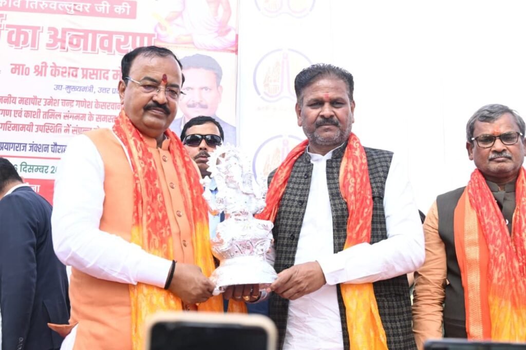 उप मुख्यमंत्री केशव प्रसाद मौर्य ने अपने उद्बोधन में कहा – कि संत कवि तिरुवल्लुवर की शिक्षाएँ मानवता, नैतिकता और सामाजिक समरसता की अमूल्य धरोहर हैं। प्रयागराज जैसी सांस्कृतिक नगरी में उनकी मूर्ति का अनावरण राष्ट्र की एकात्मता को और अधिक मजबूत करेगा। ऐसे आयोजन ‘एक भारत–श्रेष्ठ भारत’ की भावना को सशक्त बनाते हैं। महापौर उमेश चंद्र गणेश केसरवानी ने कहा कि प्रयागराज सदैव से ज्ञान, आस्था और संस्कृति की भूमि रही है। काशी–तमिल संगमम के माध्यम से तमिल अतिथियों का स्वागत करना नगर निगम प्रयागराज के लिए गौरव का विषय है। संत कवि तिरुवल्लुवर जी की मूर्ति आने वाली पीढ़ियों को नैतिक मूल्यों एवं राष्ट्रीय एकता की प्रेरणा देती रहेगी। कार्यक्रम में विधायकगण, पार्षदगण, प्रयागराज तथा बड़ी संख्या में गणमान्य नागरिक उपस्थित रहे। पूरे आयोजन के दौरान हिंदी एवं तमिल भाषाओं का भावनात्मक समन्वय देखने को मिला, जिसने भाषाई विविधता में एकता का संदेश दिया। संस्कृति, भाषा, विचार और राष्ट्रबोध का यह ऐतिहासिक संगम प्रयागराज के इतिहास में एक स्वर्णिम अध्याय के रूप में सदैव स्मरणीय रहेगा। इस दौरान जिला पंचायत अध्यक्ष डॉ वी के सिंह, विधायक दीपक पटेल, गुरु प्रसाद मौर्य, विधान परिषद सदस्य सुरेंद्र चौधरी, जिलाध्यक्ष महानगर संजय गुप्ता, गंगापार निर्मला पासवान, यमुनापार राजेश शुक्ला, क्षेत्रीय उपाध्यक्ष अवधेश चंद्र गुप्ता, प्रयागराज चीफ वार्डन अनिल गुप्ता अन्नू महिला आयोग की सदस्या गीता विश्वकर्मा वरिष्ठ समाजसेवी राम जी केसरवानी नगर निगम कार्यदायी संस्था सीएनडीएस के अधिशासी अभियंता रोहित राणा, माननीय पार्षद गुण सुनीता दरबारी किरण जयसवाल राजू शुक्ला कुसुम लता गुप्ता नीरज गुप्ता सुनीता चोपड़ा रणविजय सिंह डब्बू मयंक यादव सुरेंद्र यादव सियाराम मौर्य, आशीष गुप्ता अशोक सिंह राकेश बहादुर सिंह लल्ले सिंह गिरी शंकर प्रभाकर वरुण केसरवानी अपूर्वा चंद्रा गौरव गुप्ता बीरू सोनकर आभा मधुर गिरीजेश मिश्रा राजन शुक्ला विवेक अग्रवाल हरीश केसरवानी अमर सिंह, हिमालय सोनकर अरुण चौहान अमित गुप्ता विजय सिंह रोहित विश्वकर्मा मनोज मिश्रा रॉबिन साहू जयवर्धने त्रिपाठी मुकेश जोशी राजेश मिश्रा आदि पार्टी के सैकड़ो कार्यकर्ता एवं स्थानीय नागरिक गण उपस्थित रहे।