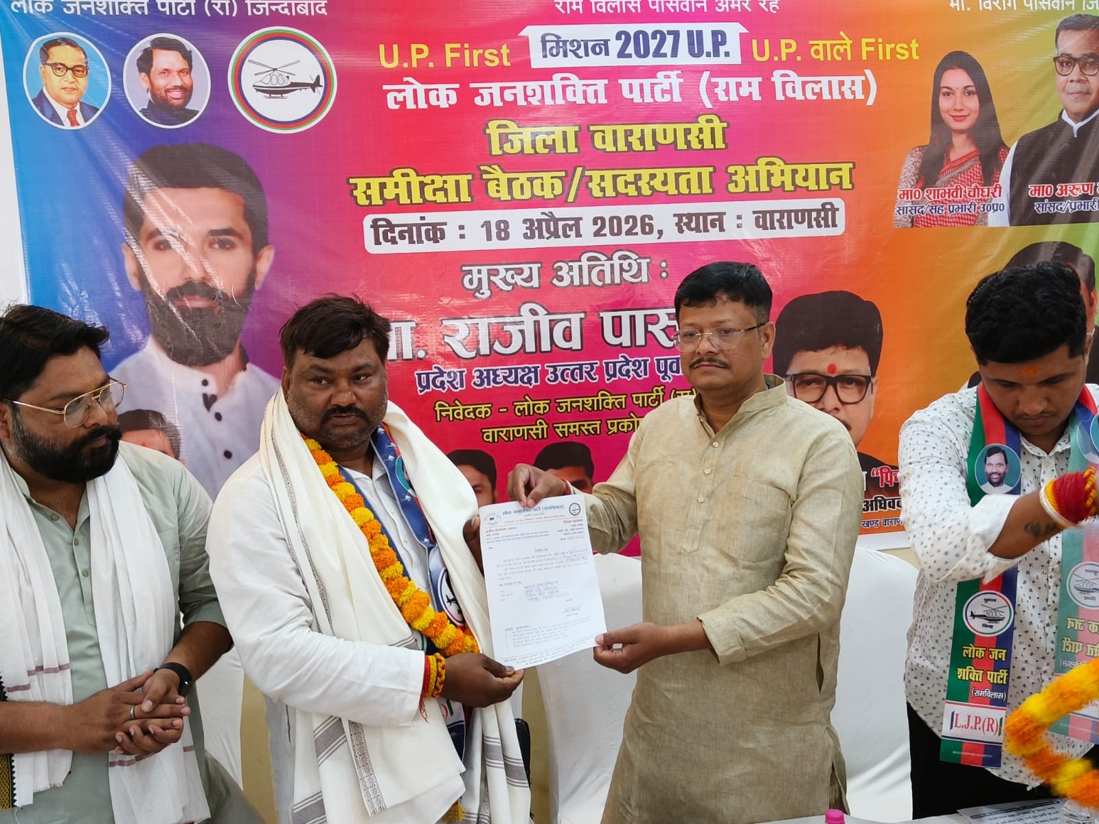 वाराणसी । लोजपा(रामविलास) की समीक्षा बैठक में जनपद के युवा एवं तेजतर्रार बनारस बार के पूर्व उपाध्यक्ष प्रशांत श्रीवास्तव ने पार्टी का दामन थाम आगामी चुनाव में हलचल पैदा कर दी । पार्टी ने प्रशांत श्रीवास्तव को वाराणसी खण्ड के स्नातक चुनाव का प्रभारी/प्रत्याशी नियुक्त किया जहां सैकड़ों कार्यकर्ताओं ने अपनी उपस्थिति दर्ज कराई । सदस्यता हेतु प्रमुख रूप से पार्टी के प्रदेश अध्यक्ष राजीव पासवान समेत सैकड़ों की संख्या में कार्यकर्ता उपस्थित रहे ।