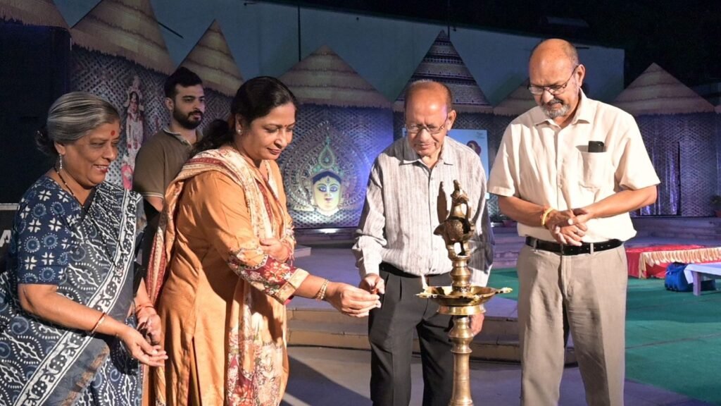 प्रयागराज। उत्तर मध्य क्षेत्र सांस्कृतिक केंद्र, संस्कृति मंत्रालय, भारत सरकार द्वारा आयोजित दीपावली शिल्प मेले की दसवीं शाम लोक-संस्कृति और भक्ति रस से सराबोर रही। शुक्रवार की सांस्कृतिक संध्या आदर्श लोक कला समिति, प्रयागराज के कलाकारों के नाम रही। कार्यक्रम का शुभारंभ मुख्य अतिथि अपराजिता सिंह, क्षेत्रीय पर्यटन अधिकारी, प्रयागराज तथा आलोक कुमार, पूर्व संपादक, दैनिक जागरण एवं विशिष्ट अतिथि मंजू शर्मा, चंडीगढ़, हाईकोर्ट ने दीप प्रज्ज्वलित कर किया। केंद्र निदेशक सुदेश शर्मा एवं कार्यक्रम सलाहकार कल्पना सहाय ने अतिथियों का पुष्पगुच्छ भेंट कर स्वागत किया। कार्यक्रम की शुरुआत लोक गायक प्रेमचंद्र यादव की जोशीली बिरहा प्रस्तुति “असनवां बइठे दुल्हे रसिया” से हुई, जिसने दर्शकों को झूमने पर मजबूर कर दिया। इसके बाद लोकगायिका ज्योति आनंद ने अपनी सुरीली आवाज़ में “हे री सखी मंगल गावो री”, “मेरी चौखट पे चलके राम आए”, “सत्यम शिवम सुंदरम” और “छाप तिलक सब छीनी रे” जैसे गीतों से पंडाल को भक्ति और आनंद से भर दिया। लोक गायक रोहित कुमार चौबे ने “गोरिया चाँद के अंगोरिया” और “जगदंबा घर पर दियना” जैसे लोकगीतों से शाम को और भी जीवंत बना दिया। कार्यक्रम का मुख्य आकर्षण रहा आदर्श लोक कला समिति द्वारा प्रस्तुत“सीता स्वयंवर” कुँवर तेजभानु सिंह ‘प्रिंस’ ने परिकल्पना एवं निर्देशन किया था। कलाकारों ने पारंपरिक उत्तर प्रदेश की लोककला शैली रामलीला को राधेश्यामी ढंग में सजीव चित्रण किया। संवादों की स्वर-लयबद्ध प्रस्तुति और मानस की चौपाइयों की संगीतमय अभिव्यक्ति ने दर्शकों को भावविभोर कर दिया। दर्शकों ने श्रीराम, लक्ष्मण और जनकपुरी के दरबार के दृश्य देखकर स्वयं को मानो त्रेतायुग में अनुभव किया। मंचन के दौरान हर पात्र की भावनाओं और गायकी ने भक्ति का ऐसा वातावरण रचा, कि पूरा प्रांगण “जय श्रीराम” के उद्घोष से गूंज उठा। हारमोनियम पर कुँवर तेजभानु सिंह, ढोलक पर रामराज पटेल एवं की-बोर्ड पर मनु मिश्रा ने साथ दिया। इस अवसर पर प्रदीप भटनागर, श्याम बिहारी गौड़, रामचंद्र श्रीमाली सहित काफ़ी संख्या में दर्शक मौजूद रहे